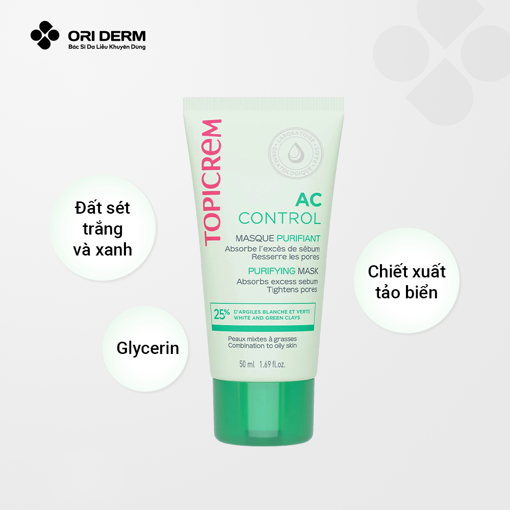 Topicrem Acne Control Purifying Mask là mặt nạ giúp hấp thụ bã nhờn, dầu thừa và se khít lỗ chân lông dành cho da dầu mụn, nhạy cảm. Sản phẩm đến từ thương hiệu dược mỹ phẩm TOPICREM, thuộc công ty Dược Phẩm Mayoly Spindler tại Pháp. Đề cao sự an toàn, êm dịu và cung cấp đủ ẩm cho da là bí quyết giúp hãng mang lại những giải pháp chăm sóc da và điều trị hiệu quả tối ưu.