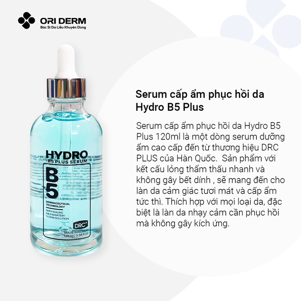 Serum cấp ẩm phục hồi da Hydro B5 Plus 120ml là dòng sản phẩm dưỡng ẩm cao cấp từ thương hiệu DRC PLUS (Hàn Quốc), mang lại cảm giác tươi mát và cấp ẩm tức thì. DRC PLUS, với hơn 17 năm kinh nghiệm, chuyên sản xuất mỹ phẩm và thực phẩm chức năng chất lượng, được tin dùng rộng rãi.