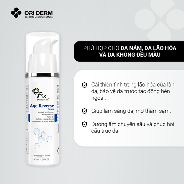 Fixderma Age Reverse Serum là giải pháp cho da lão hóa, vừa trẻ hóa, săn chắc da, vừa dưỡng ẩm vượt trội: